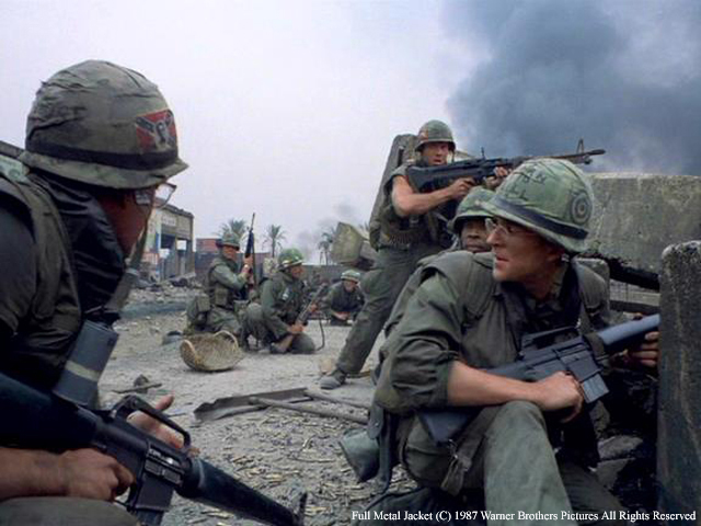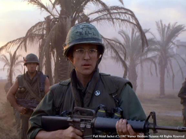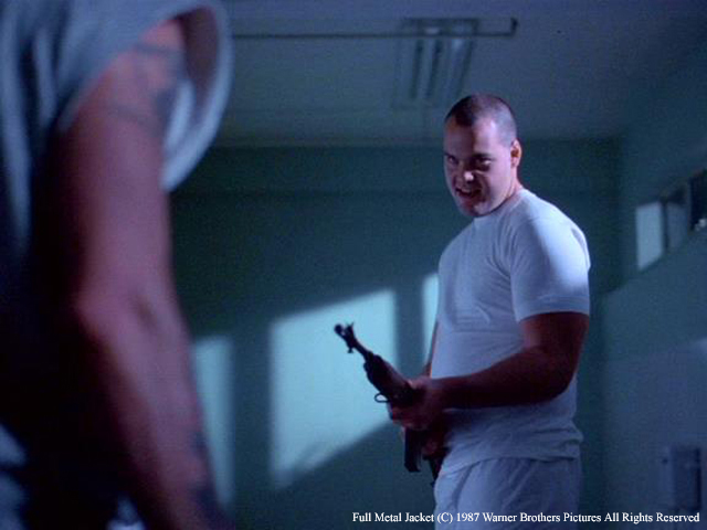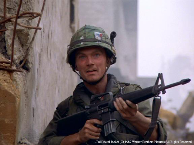 MGC M16A1が出てると言えばもちろん FULL METAL JACKET(1987) でしょう! 発砲しないシーンではすべてMGCが使われていました。 この映画はM14が一番印象に残るのですが発砲シーンはM16A1ではなくみんなM16ライフルだったのですね!(汗) よく見ていると全員がシーンによってM16とMGCを持ち替えているのでした!(笑) MGCのはハンドガードに艶があるのでそれとすぐわかります。 | |