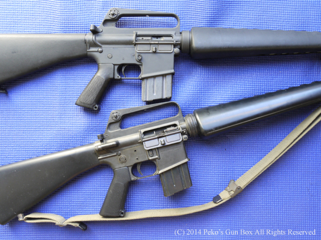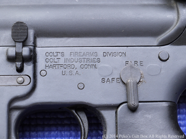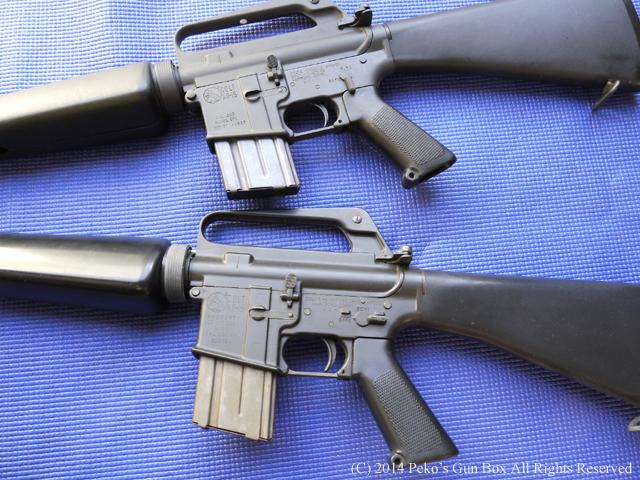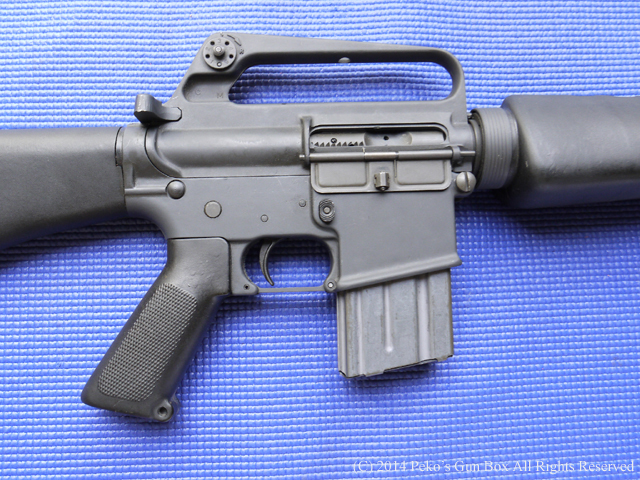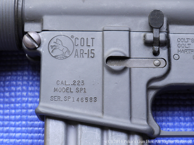 AR15と言えばアーマライト社が開発したアサルトライフルでアメリカ空軍が最初にこれをM16として採用し、コルト社がその製造を請け負ったと言うのは皆さんご存知だと思います。 その後、フォワードアシストをアッパー・フレームに追加、マグキャッチの周りにガードをつけるなど改良されてM16A1となりました。 今回紹介するAR15 Model SP1はコルト社が当時初めて民間向けにM16からフルオート機構を取り除いて販売したシビリアン・モデルなのです。 | |