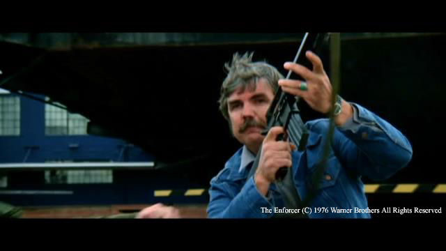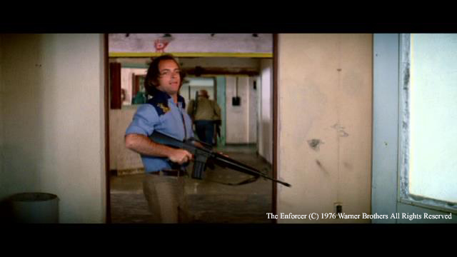 フォワード・アシストがついていないM16が出てる映画といえば??? これかな?と思い出したのは THE ENFORCER (1976) です。 いわゆるダーティーハリー3ですね。 | |