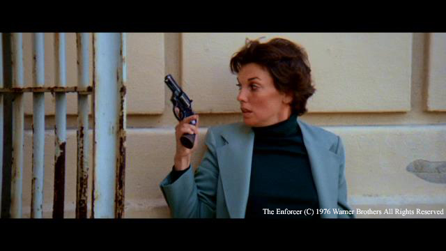 もう1つ別の余談を!(笑) ダーティーハリー3で助手のタイン・デイリーが使うのはパイソンだとずっと思っていました。 大きさ的にダイヤモンドバックより大きいと思っていたからです。 トリガーガードの形が違うので見分けがつくのですが、どうも見えなくてはっきりしません。 この女優さんが小柄でガンが大きく見えるのかもしれません。 が、今回やっと決定的なシーンを見つけることができました。 ハンマーノーズがついているシーンを見つけたのです。 それにグリップのフレームが下までなく途中までのショートフレームだというのも確認できました! つまり、ダイヤモンドバックが正解というわけでした。 これでやっと夜眠ることができます!(爆) | |