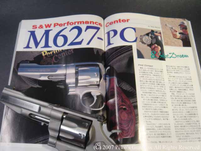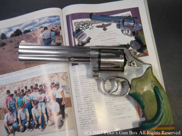 この8連発、実は以前ガン誌にレポートされています。 レポーターはこのガンの持ち主、私の友人です。 彼はリボルバーを持たせたらかなりの速さで撃ち、スティール・チャレンジやビアンキ・カップなどでジェリー・ミキュレックと同じようにリボルバーで出場し、入賞して前回レポートしたM66と同じようにこのガンを商品としてもらったものです。 | |