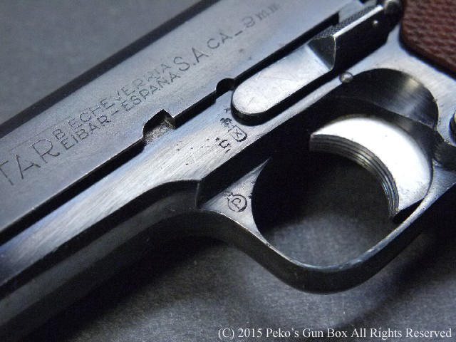 今回のお題は今まであまりレポートされたことがないと思われるスペインのスター・モデルB 9mmオートを紹介します。 スペインのスターと言えば三流でコルト社などのコピー物を作っているというイメージを受けるので今まで気にもとめなかったのですが、近くのガンショップへ行った時にショーケースの中にコルトの1911によく似たガンが2丁並んでいるのに目がとまり、最近は1911のクローンが巷にあふれているのでその仲間かな?と覗いてみたら なにやら最近のものとは違ってレトロな感じで付いている札を見ると2丁とも ”スター・スーパーB 9mm” と書いてあったので、ああこれが映画で1911の代わりに発砲シーンでよく使われたスターか!と思い出しました。 確かに1911に似ていますが、スーパーBというモデルは右側にテイクダウン・レバーが付いていてちょっと雰囲気が違うのです。 この2丁はコンサイメント(委託販売)でガンショップに並んでいたものでした。 | |