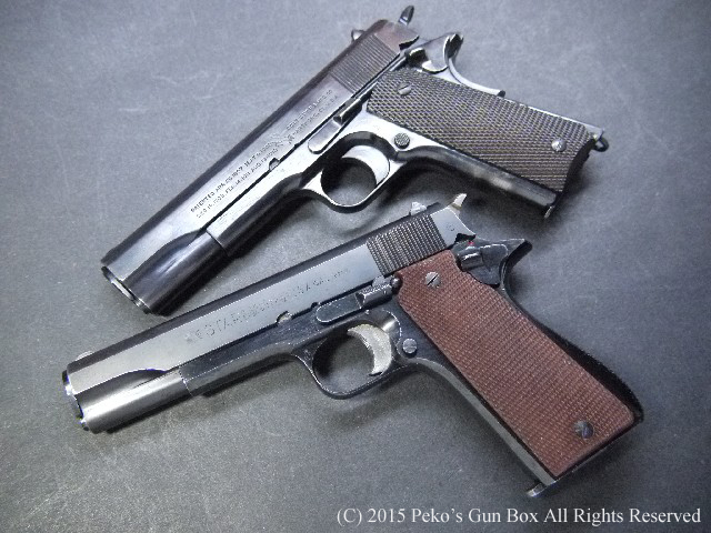 ガンプロに登場したといってもあくまでもメインは1911なのでサラッと出ただけですし、実はレポートしたトシさんがシカゴにいる関係上、1911と別々に写真を撮ったので一緒に並べてどれくらいサイズが違うとかの比較が出来なかった訳で、ここでは友人所有の1911をゲストに交えて比べてみようと思います。 | |