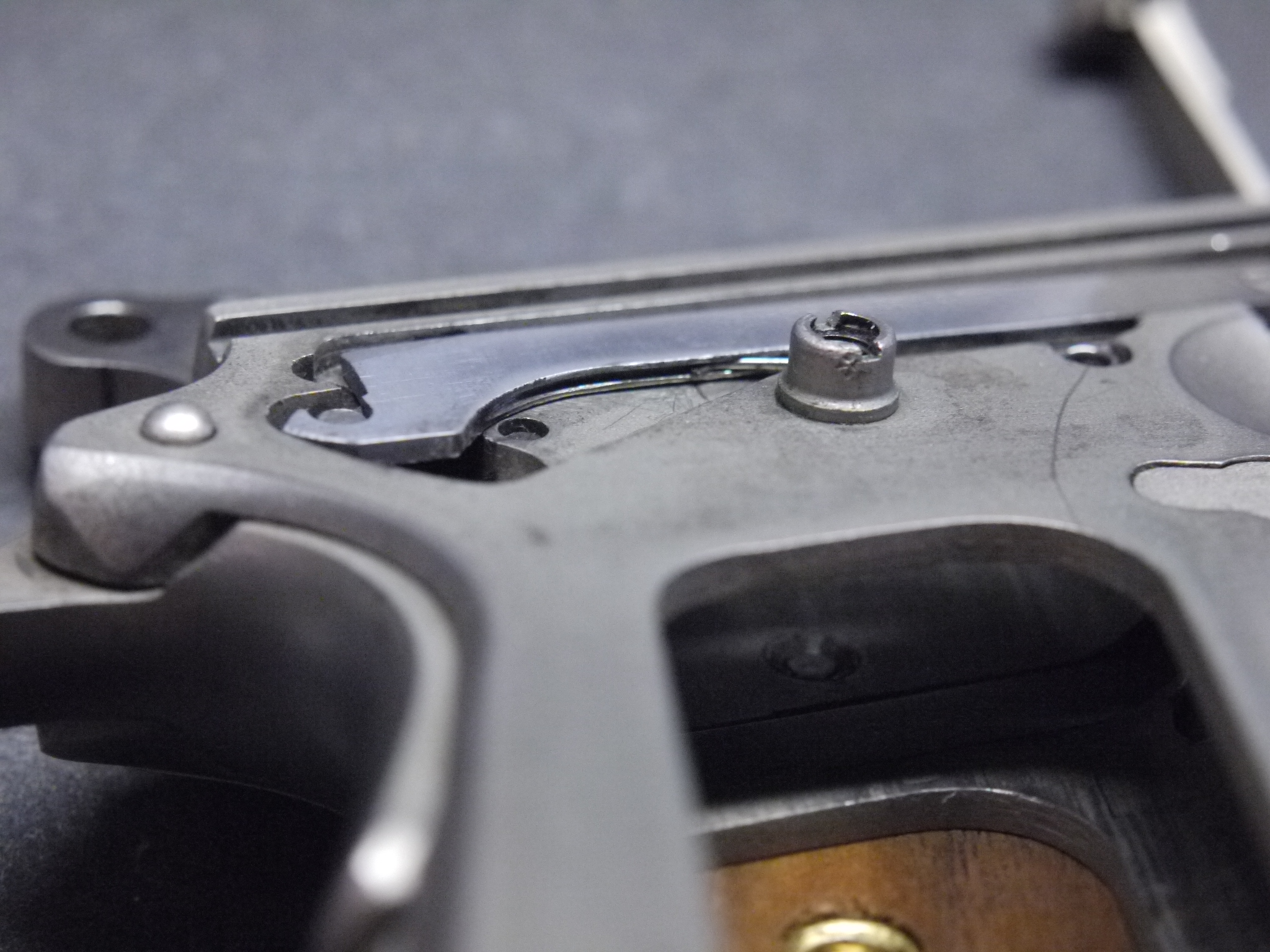 トリガーのリターンスプリング・プランジャーが入る所。 |