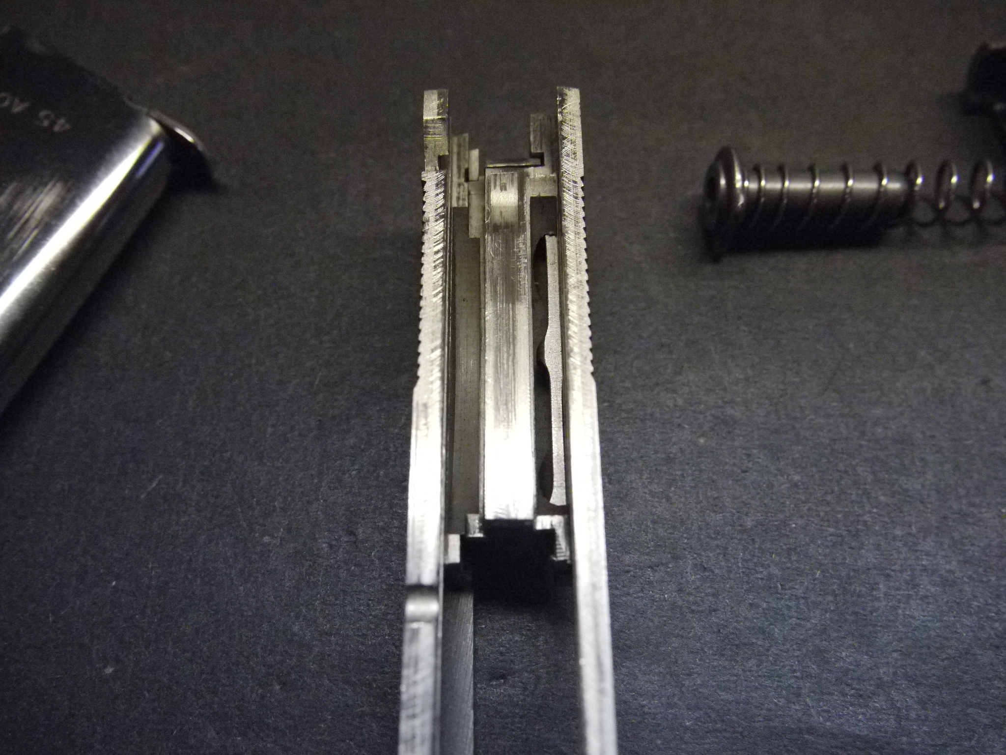 ゴールドカップのように肉抜きがされてあるスライド。 |