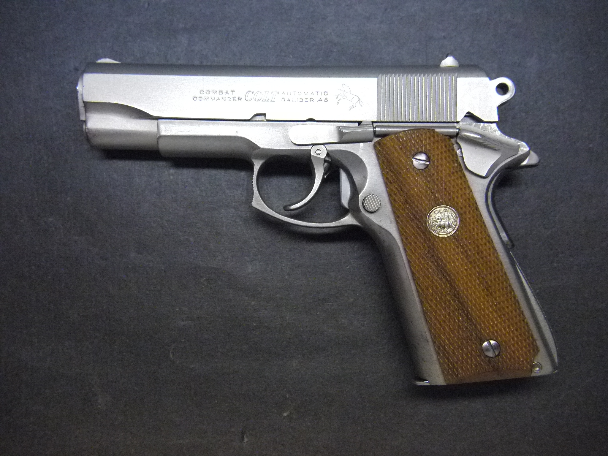 今回紹介するダブルアクション・コマンダーは十数年前、ELANさんがガンプロのトシさんに探してもらい手に入れたもので、ガン誌で紹介されたガンに近い仕様で1972年製のシリーズ70コンバットコマンダーがベースになっていて、ダブルアクション・コンバージョンとカスタムバレルにトリガ―ジョブが施されサテン・ニッケルメッキがかけられています。 このガンの第一印象は非常にカチッと作られていて完成度の高さに驚きます。 ダブルアクションはスムースですしガン誌にレポートされていたシングルの時のトリガーの感触の悪さもこのガンではスパッとハンマーが落ちます。 工作も丁寧で後付け感がなく、まるで最初からこう造られたもののように完成度が高いです。 細部は写真を見ていただくとして何よりこの幅広でスムースなトリガーに感動しました。(笑) ダブルアクション・トリガーはダブルアクションだけを担っていてシングルアクションは元のトリガーを使っています。 ハンマーが起きた時にトリガー・バーがシングルアクションのシアーを邪魔しないようにうまく設計されているのですね。 |