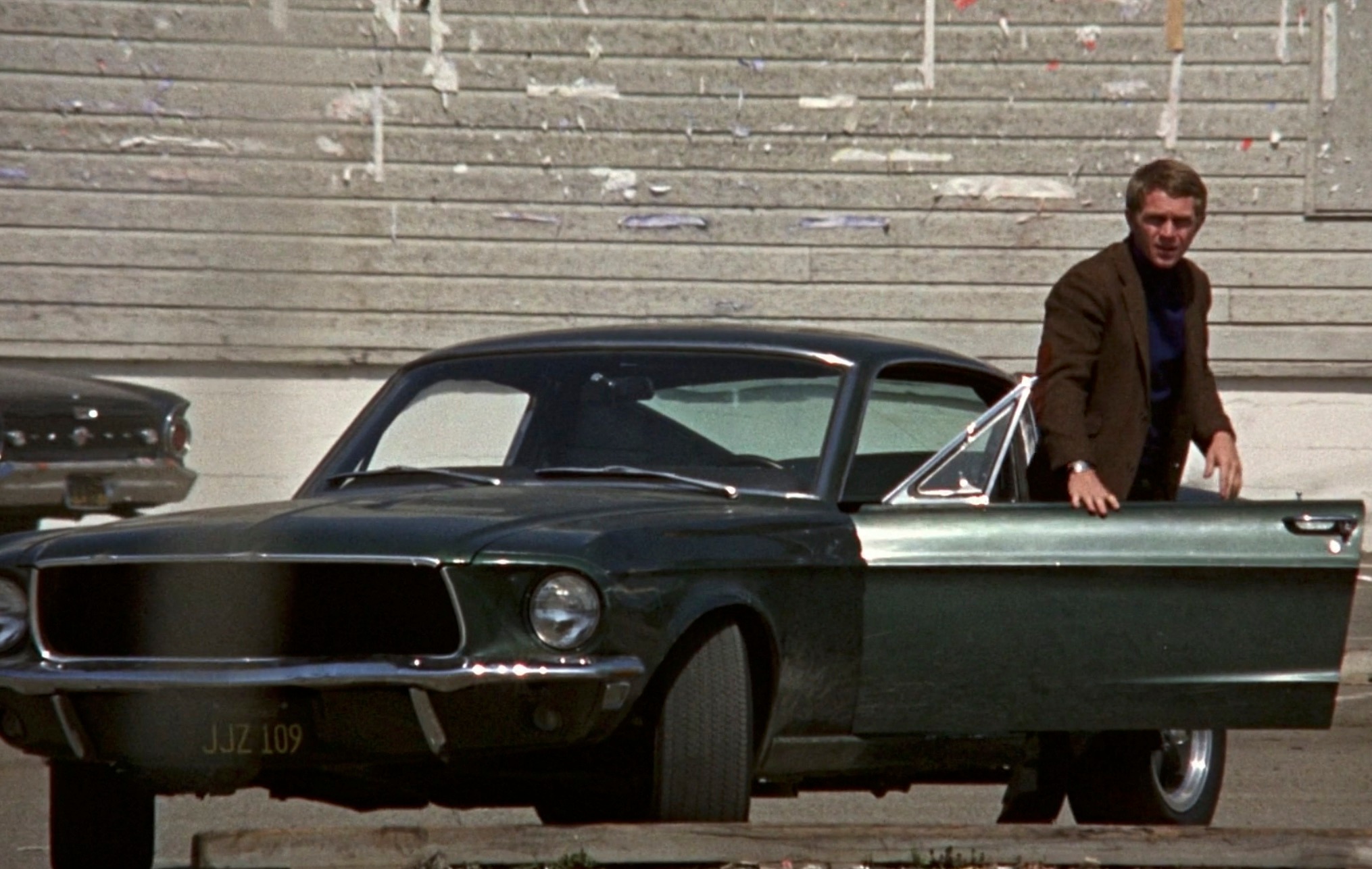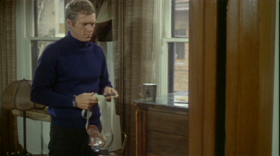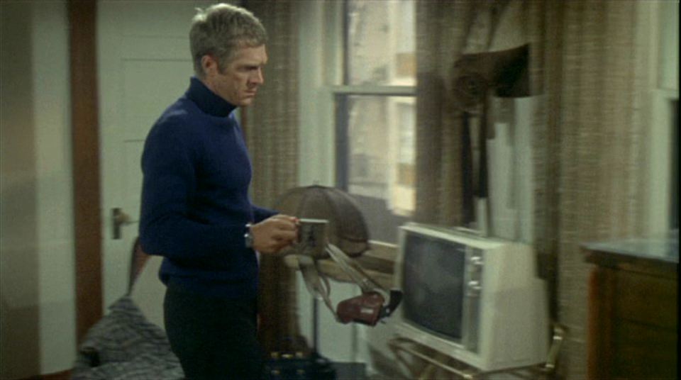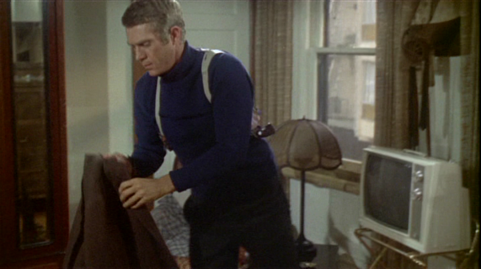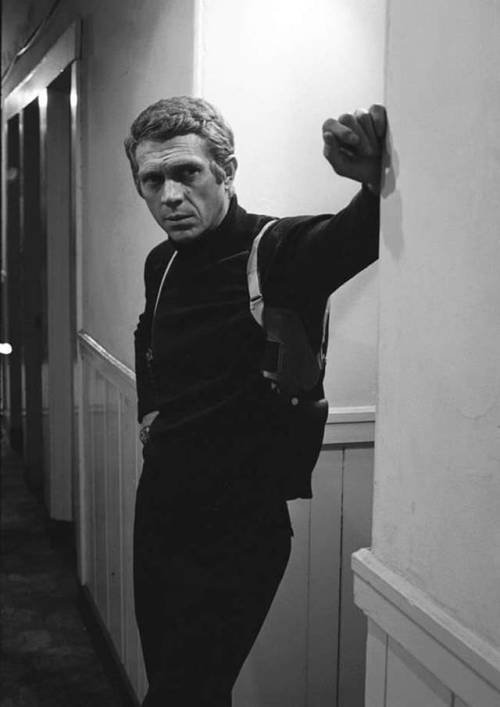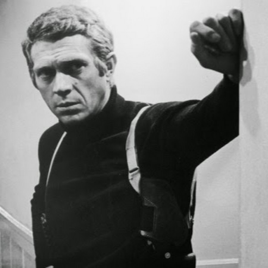 さてラウンドバット説が定説なのですが、お気付きの方もいらっしゃるとは思いますが映画のポスターになっているブリットのガンはどう見てもスクエアバットですよね? なぜそうなのか疑問に思ってこれの元になったスチール写真を探してみました。 黒く潰れている写真がほとんどなのですが、少しでもまともに映っているのを探してみました。 | |