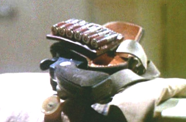 まずはラウンドバット説から! これはもちろん階段の手すりに置かれたホルスターのシーンでそれとわかります。 ダイアモンドバックは1966年から発売されたコルトのDフレームリボルバーで1966年はコルトのDフレームリボルバーはショートスクエアバットと呼ばれる短いグリップフレームにディテクティブスペシャルを含め変更されています。 ダイアモンドバックの2.5インチモデルはスクエアバットがオリジナルなのでブリットのは1966年以降のディテクティブのグリップが装着されていることになります。 | |