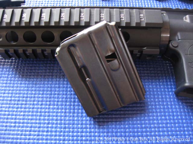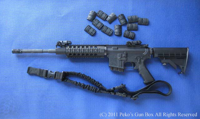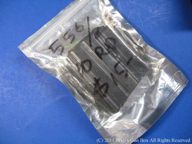 一緒に行った友人はさっそく撃ちに行ったそうですが、この$15.00と書いてある10発マガジンは10発入れるとジャムして使えないので5発入れて使ったそうな! 私のは使うどころかマグキャッチにロックの穴が届かなくて、最初から使えない代物でした!(笑) レールガバーもハンドルをつけるので使わないしスリングもマグプルっぽいですが、マグプルのようにワンポイントからツーポイントに出来ないのでイマイチです。 |