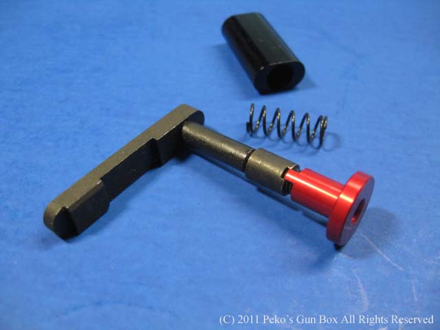 これはマグ・キャッチのスクリューを回すためのツールなのですが真ん中の穴にはネジが切ってあってそのままねじ込んでいくとボタンになるという代物です!(笑) もちろん付けっぱなしではいけません! 射撃場へ持っていく時ははずしていきましょう!(爆) | |