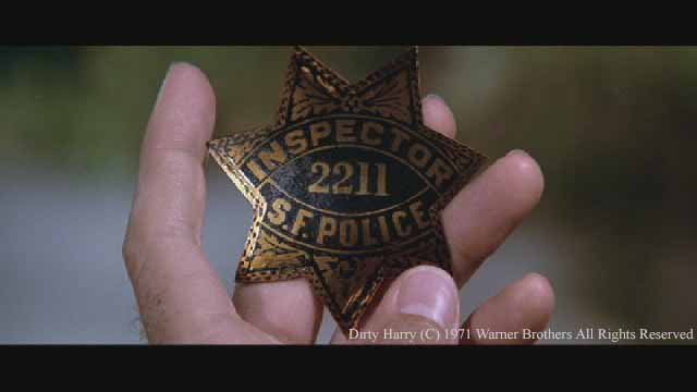 6.5インチでちゃんとバレル・ピンがありますのでM29は初期の物だとわかります。 グリップはチェッカーのないスムースな物に取り替えられ、ポリス・バッジをかたどったプレートにワーナー・ブラザースからジョン・ミリアス氏へ贈ると書かれています。 舞台になったサンフランシスコ市警のバッジは星型なのですけどね! | |