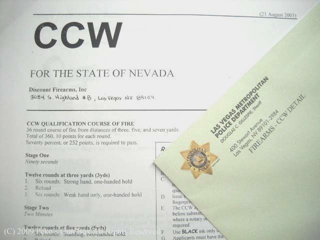 | CCW とは銃の携帯許可のことで、カリフォルニア州ではまず普通の人は許可が下りないのですが、ネバダ州では結構簡単に取れるので大統領も変わり大々的にガンの規制が行われるとうわさされているので取れなくなる前に取っておこうという事で申請してみました。 | |