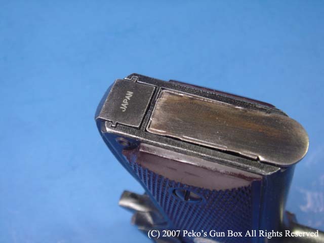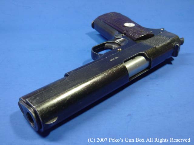 | ここに紹介するのはMGCガバメント・モデルのGM1と呼ばれる最も初期のものと思われるものの輸出仕様のモデルです。 COLTの商標を使えない為、スライドの刻印が違うのとグリップのランパント・コルトのマークはメダリオンにして輸入会社のRMIのマークをはめ込んであります。 なかなか程度良く残っているでしょう? | |